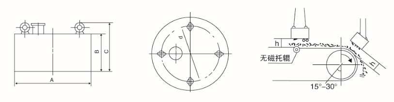 | 型號> | 冷卻方式 | 適應帶寬 mm | 額定高度 mm | 磁場強度 mT | 勵磁功率 kw | 適應帶速 ≤m/s | 外形尺寸mm φD×B | 重量 | |